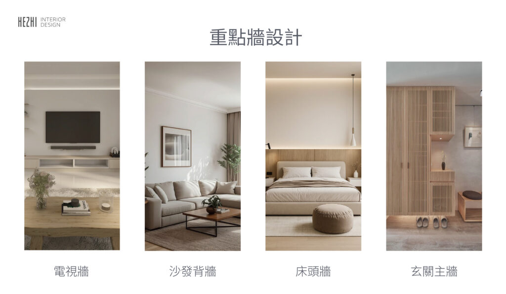 • 深色主牆 → 增加穩定感與重心