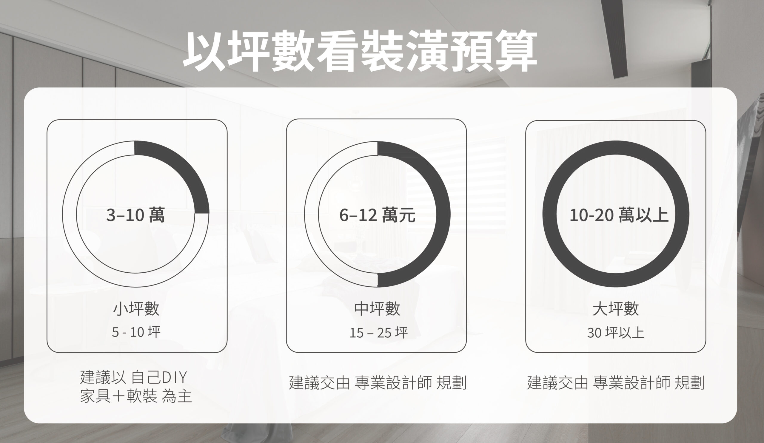 • 統包 vs 設計師:統包便宜但需花時間監工,設計師能提供完整規劃與品質把關。