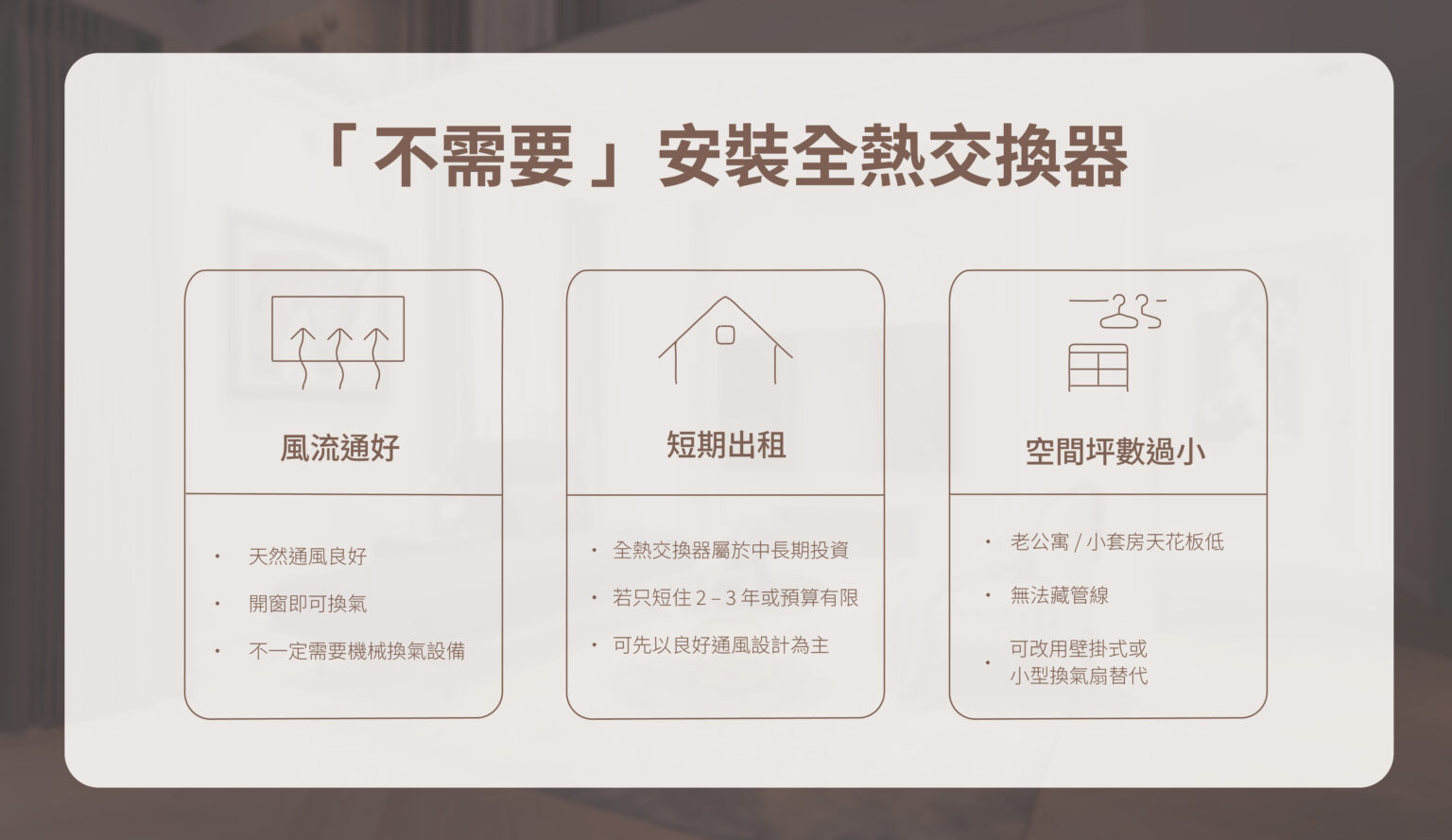 全熱交換器屬於「中長期投資」設備,如果你只是短住兩三年、